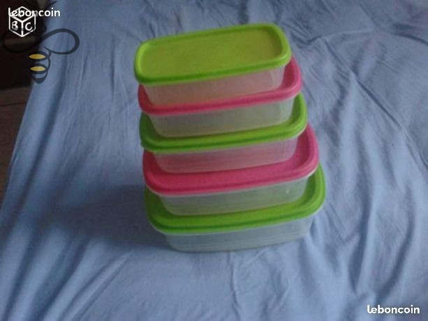vends lot de 5 boites de tupperware d'origine a différent taille pour conservé Viande Légume etc voir photo